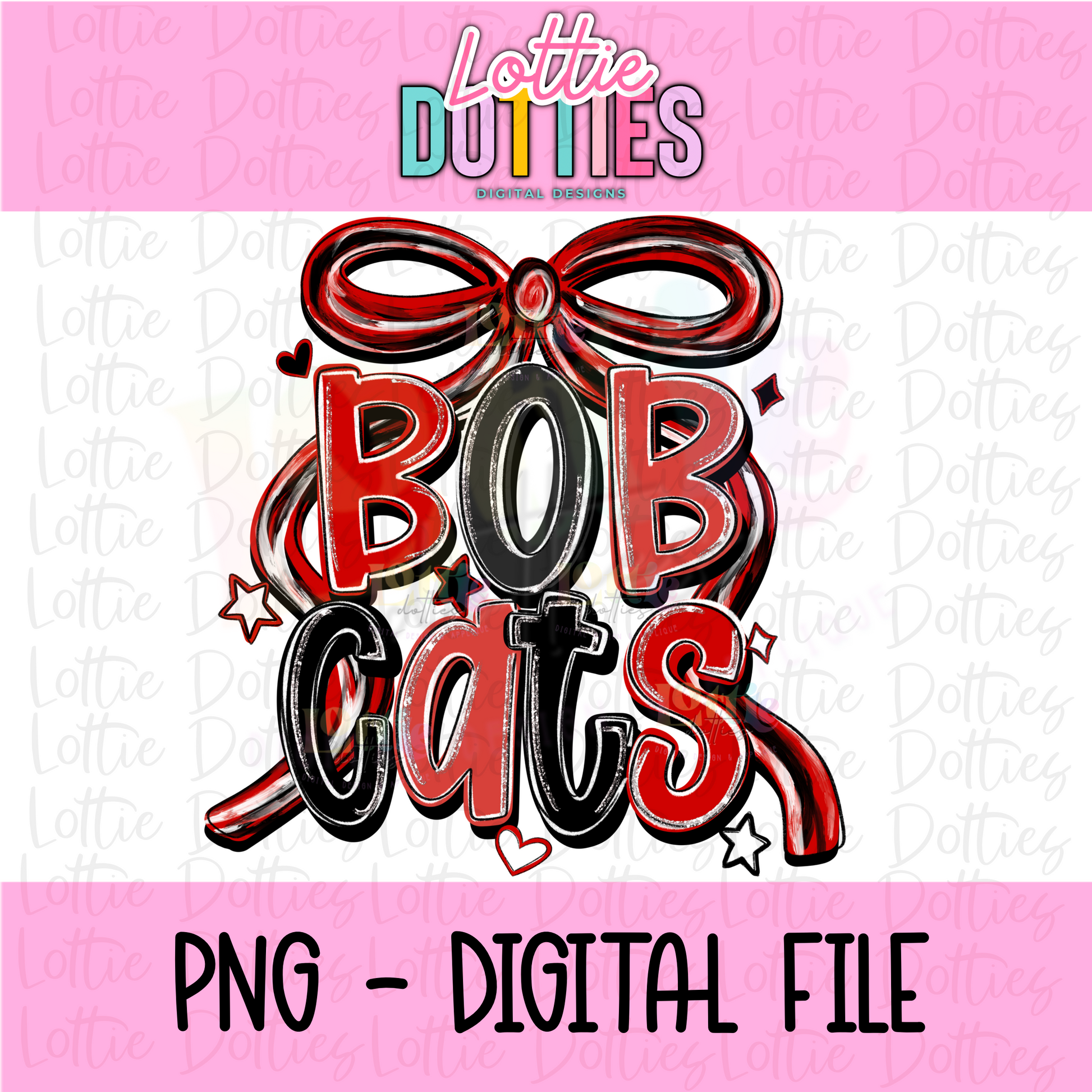 Bobcats PNG - Bobcats Red & Black bow design - Digital Download - coquette mascot