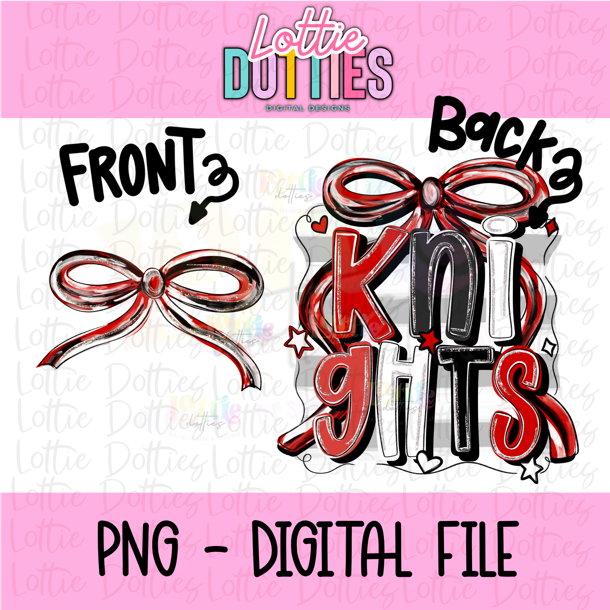Knights PNG - Knights Red & Black bow design - Digital Download - coquette mascot