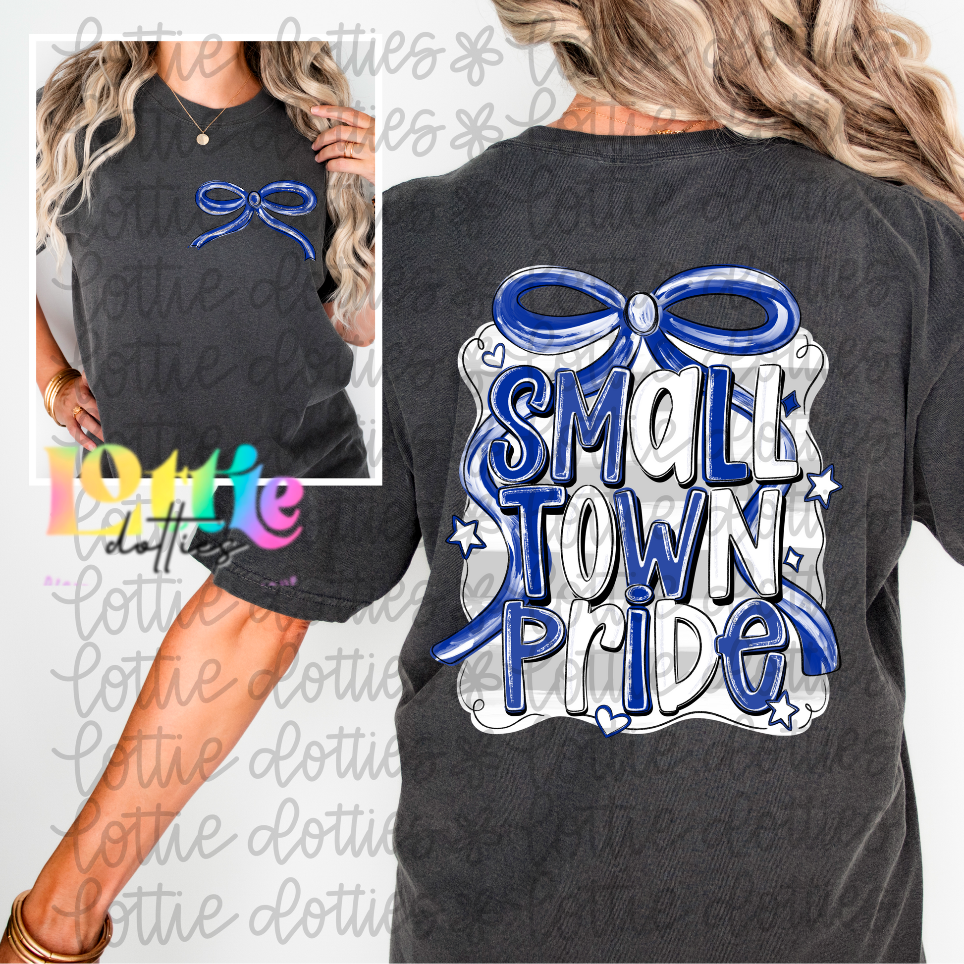 Small Town Pride PNG - Royal blue and white Small Town - bow design Sublimation - Digital Download